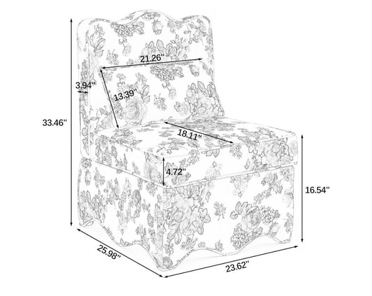Flannel Upholstered Accent Chair-Retro Single Sofa Chair with Floral Pattern Armless Lounge Chair with Removable Cushion & Pillow (White with Floral Pattern) (New in Box)