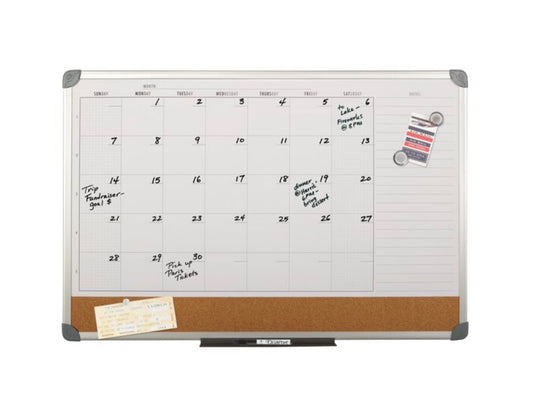 Quartet Magnetic Calendar Combination Board 36 Inch X 24 Inch Silver Aluminum Frame