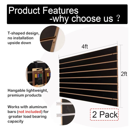 Slat Wall Paneling for Retail Display 2 Pack 4' X 2' Black Slatwall Panel for Garage Organizer Shiplap Wall Paneling, Slat Board Garage Slatted Storage Systems