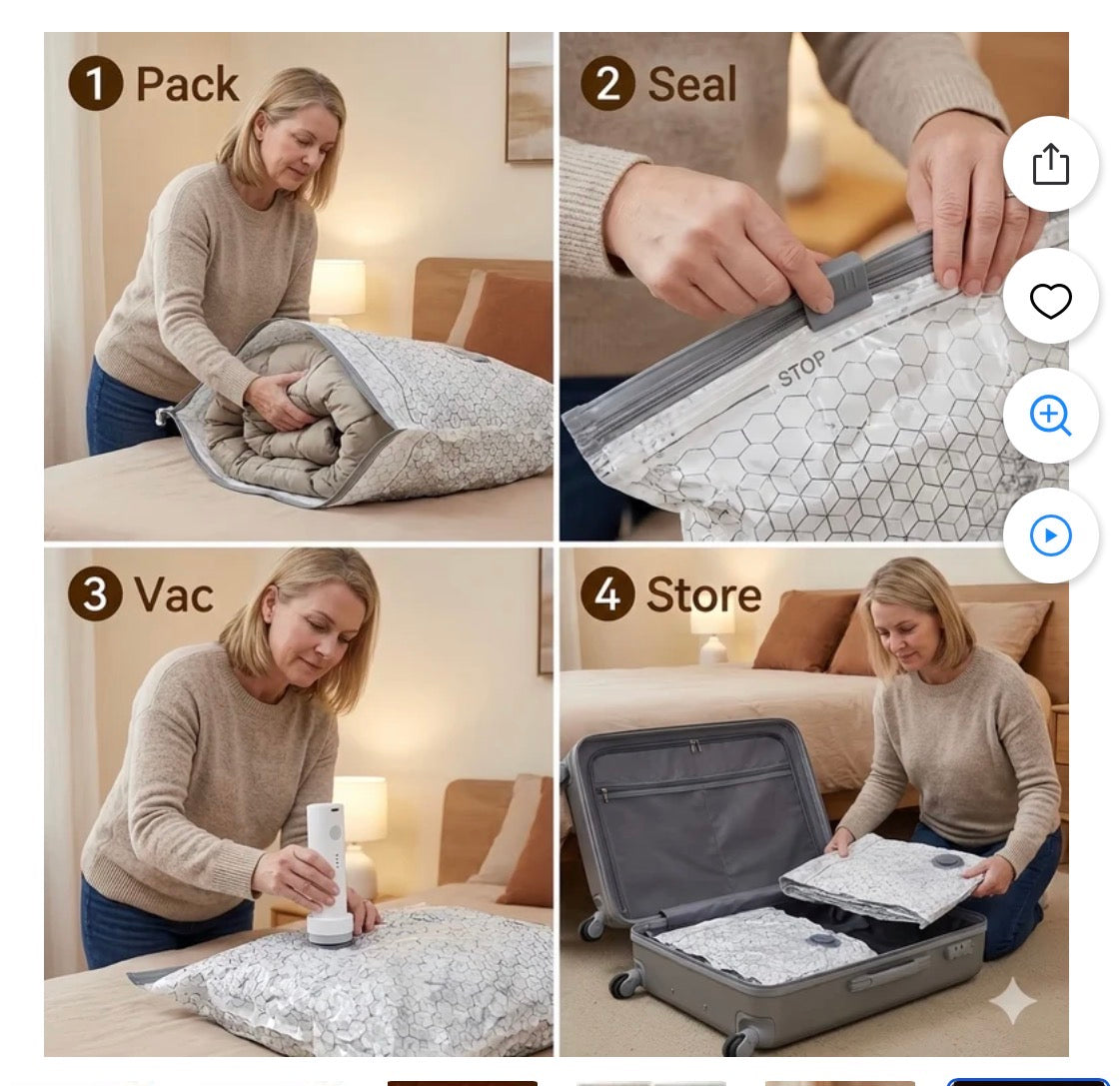 Durable & Reusable Design: Designed for long-term use, these vacuum seal bags feature a double-zip seal and a triple-seal turbo valve to prevent air from leaking back in. They are reusable season after season for home organization or repeated travel.