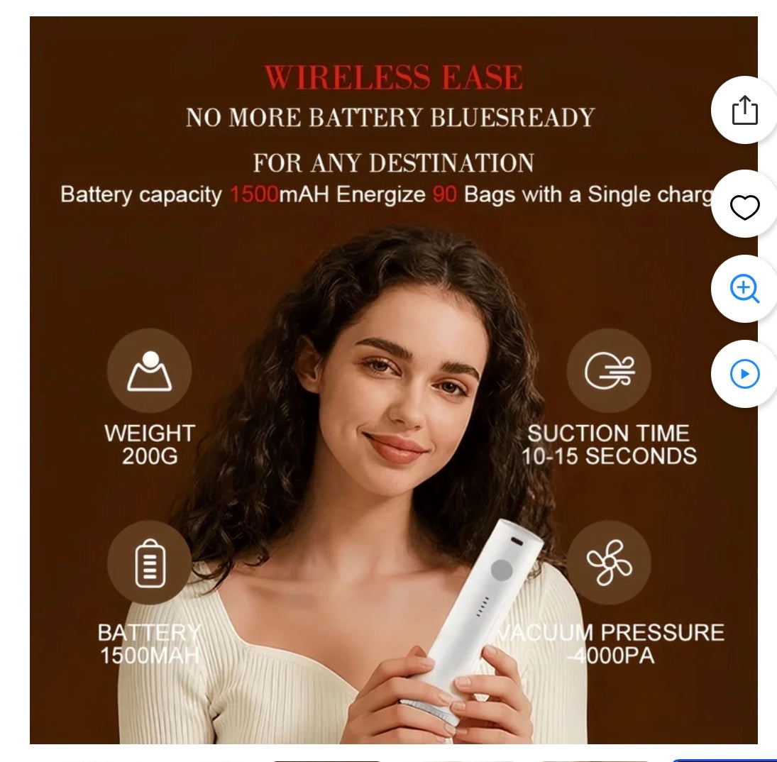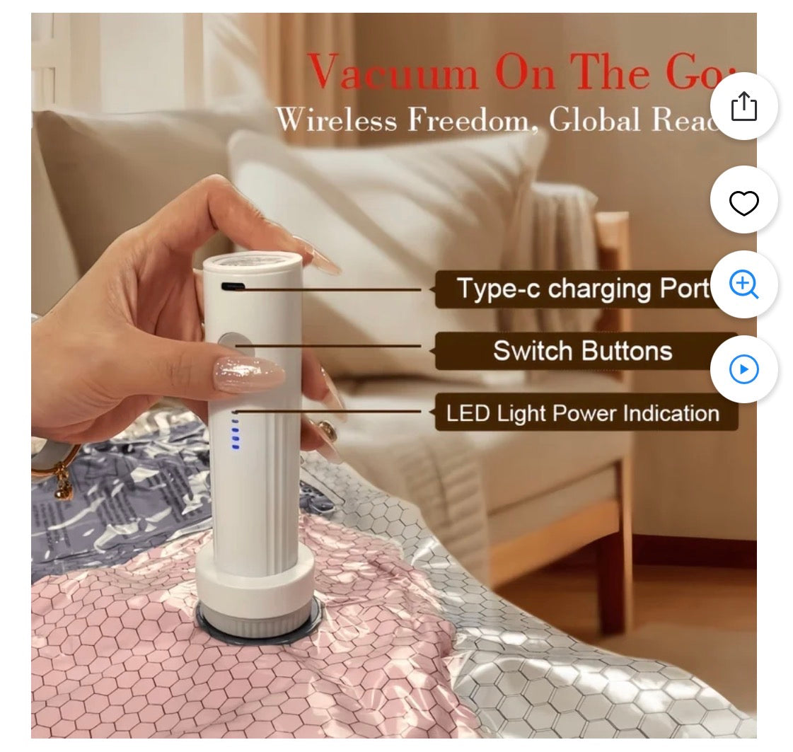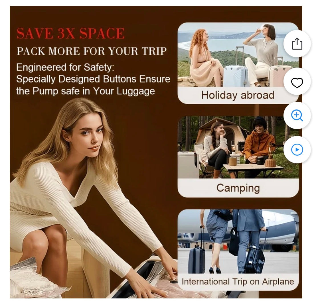 Powerful Electric Pump Included: Unlike standard bags that require a manual hand pump or vacuum cleaner, this set includes a portable cordless USB electric air pump. It quickly removes air and seals bags in seconds, making it perfect for travel or camping where a vacuum isn't available.