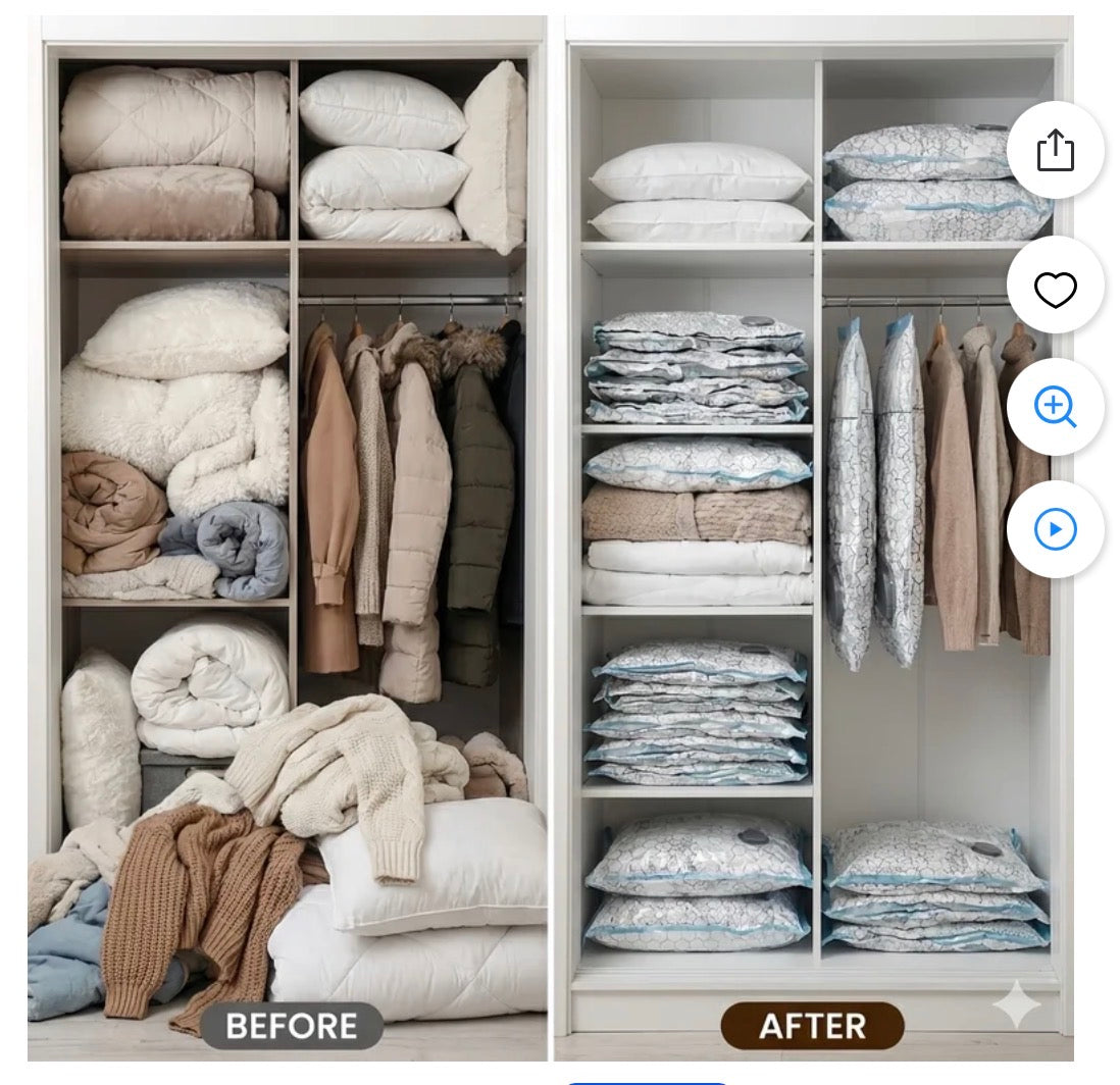 Save 80% Storage Space: Utilize our advanced compression technology to reduce the volume of your items by up to 80%. This allows you to fit more into your suitcase, maximize closet space, and make moving houses significantly easier and more organized.