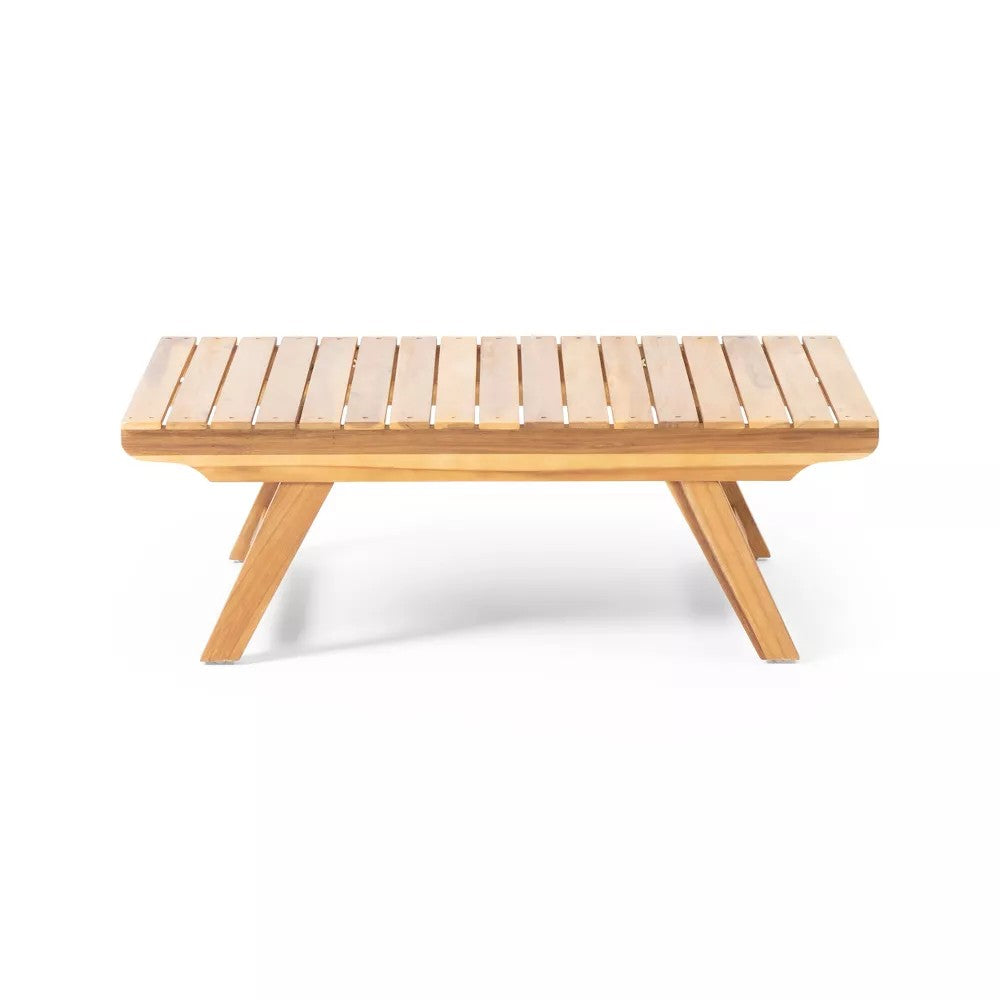 Made with acacia wood that brings a sleek and exotic look to your space, this durable hardwood naturally withstands outdoor elements and will not darken over time. Acacia wood is perfect as a solid, heavy frame that resists wear and tear.