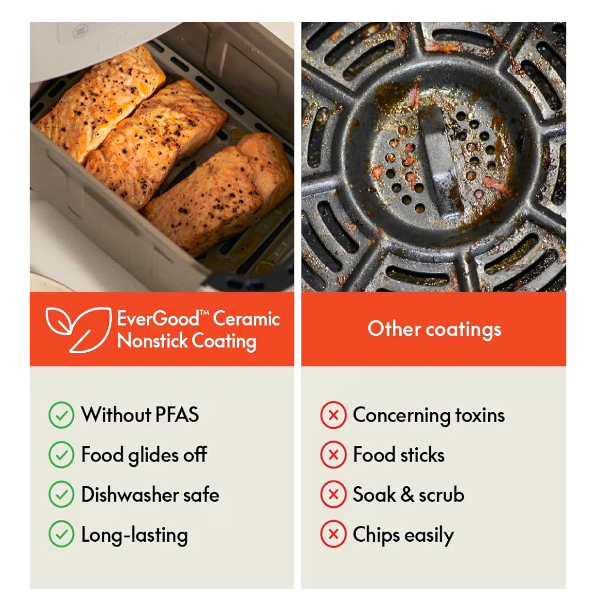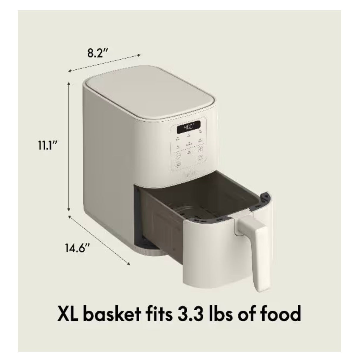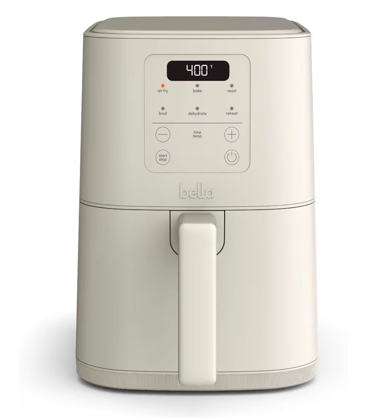Bella 4Qt Slim Air Fryer, Fits-anywhereu2122 Kitchenware, EverGoodu2122 Ceramic Nonstick Coating, Adjustable Temperature, 6 Preset Cooking Options, 60 Min Auto Shutoff w Audible Tone, 3.3lb Capacity, Oatmilk