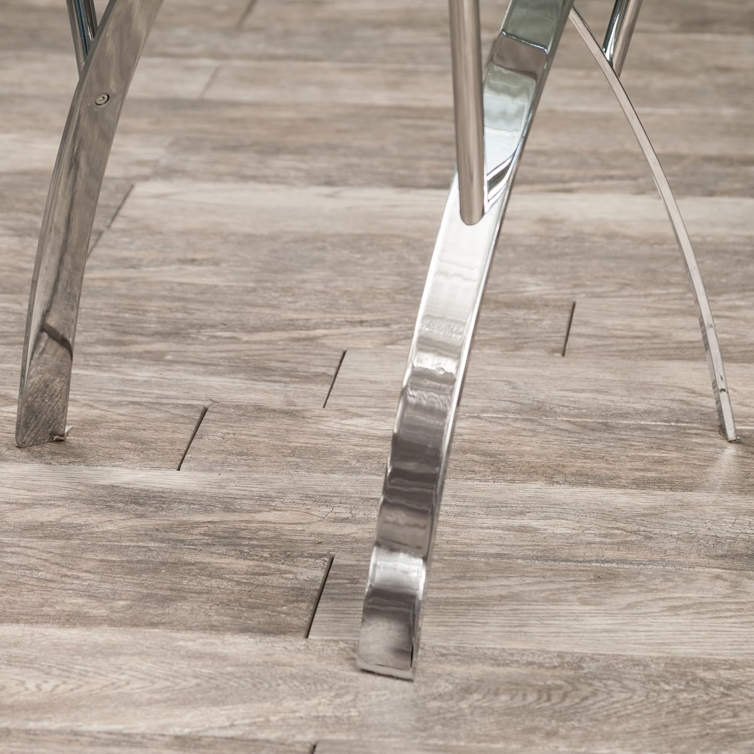 Add a touch of modern chic to your space with this set of two Marin round end tables. Wide and durable, the tempered glass tabletops provide plenty of room for your home decor. Chromed iron legs support these classy side table, creating a look of functional art for your living space.