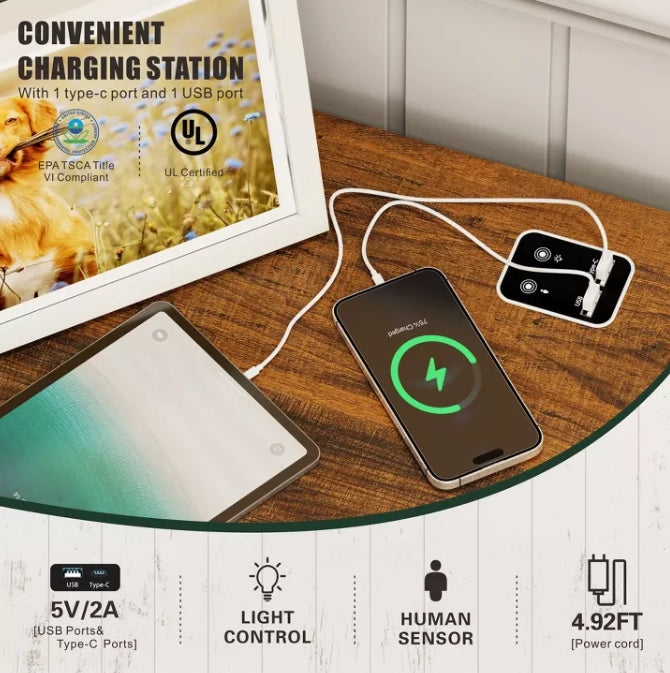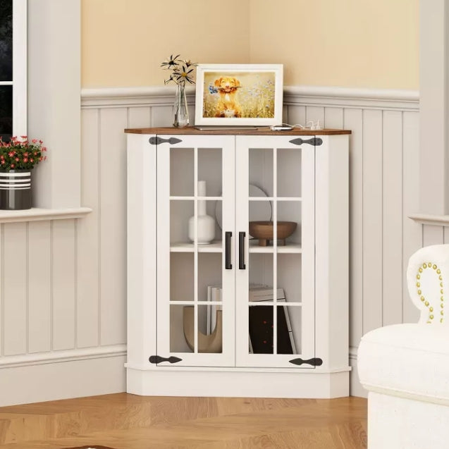 Our farmhouse corner cabinet comes with a USB port and a Type-C port, making it convenient to power your devices without the hassle of extra sockets. Charging anxiety is a thing of the past.