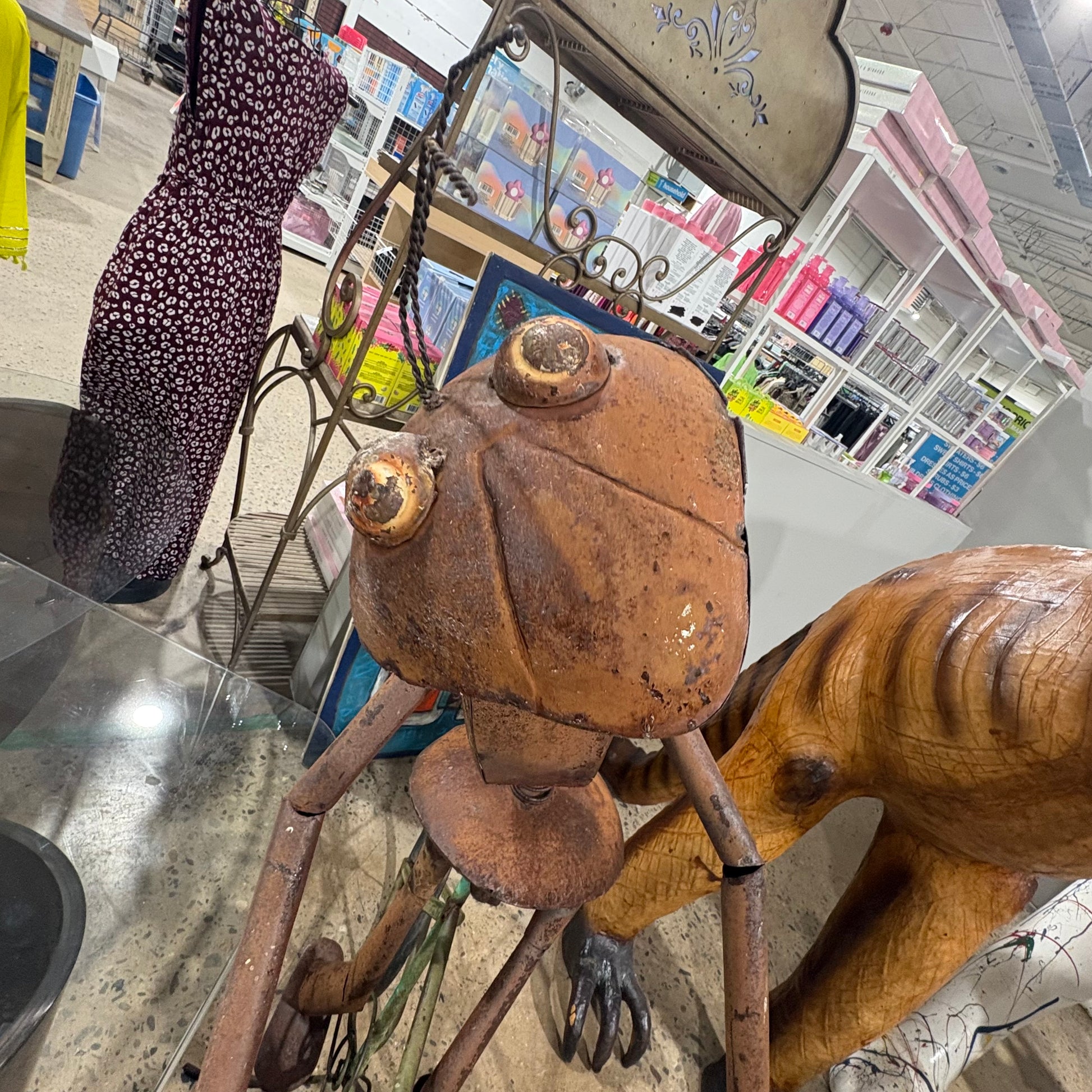 Metal Insect on Bike Sculpture