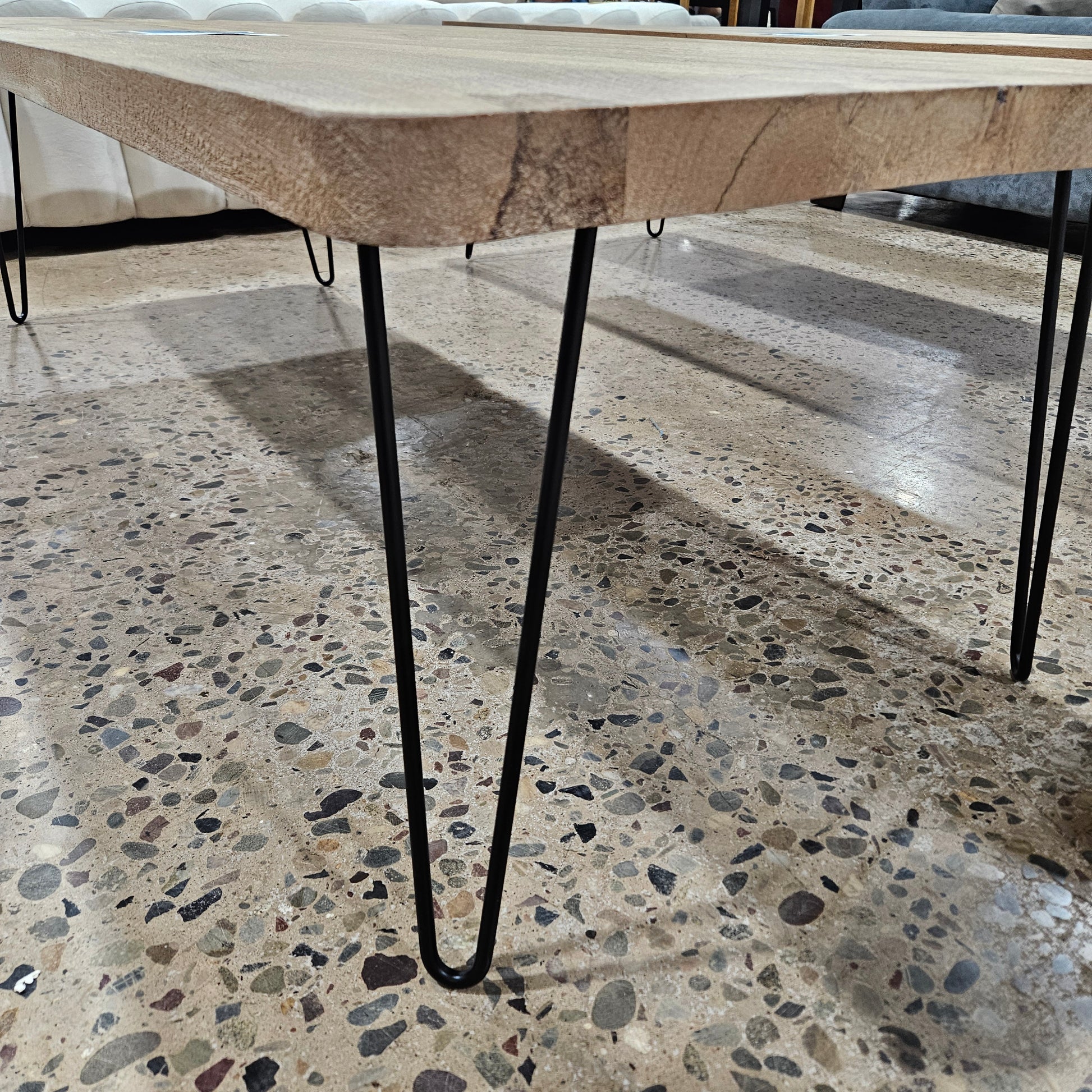 Beautiful MCM inspired coffee table. Awesome hairpin legs and amazing distressed top.