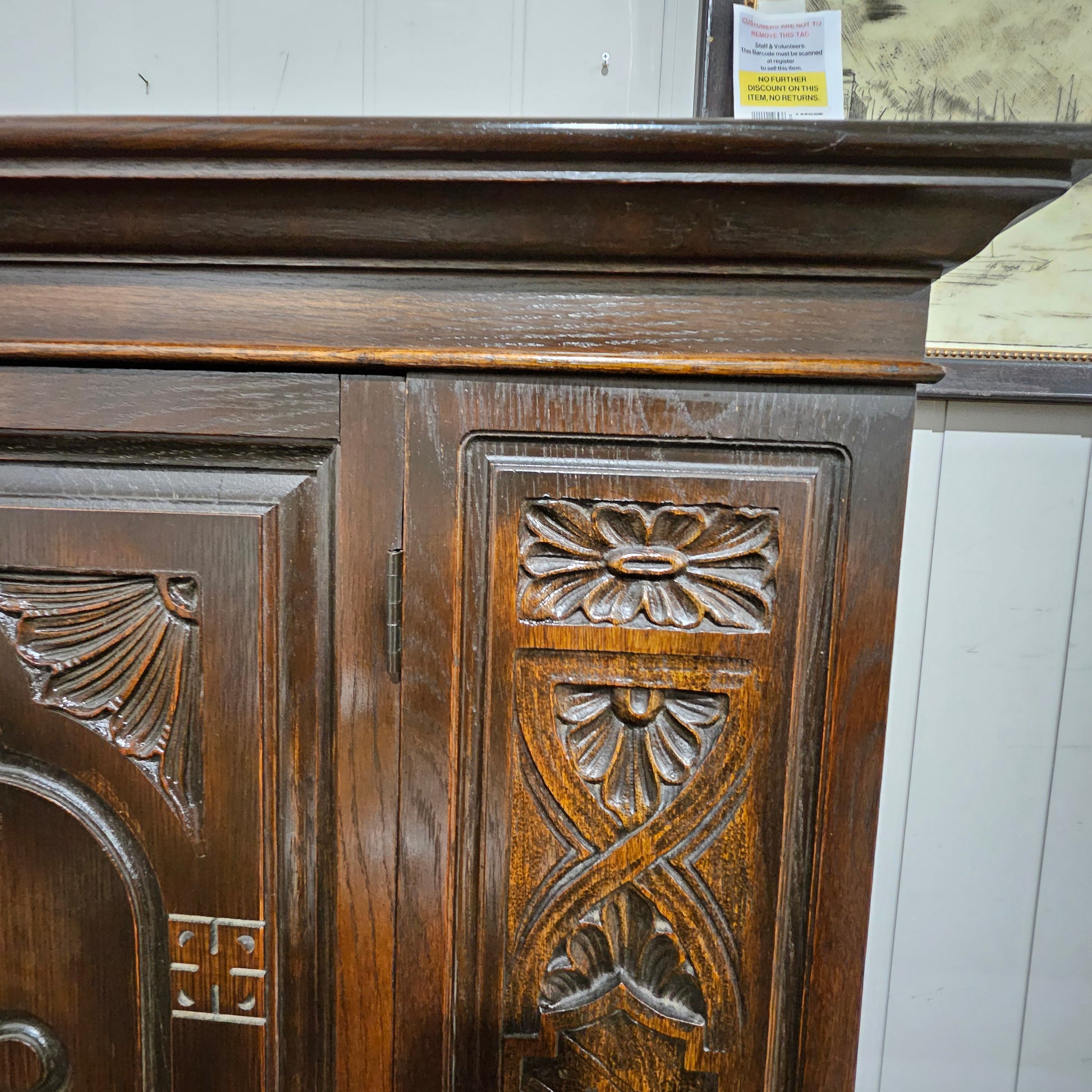 Revival solid wood piece with hand carved floral panel. Beautiful design. Ranson Brothers Furniture, West Virginia.