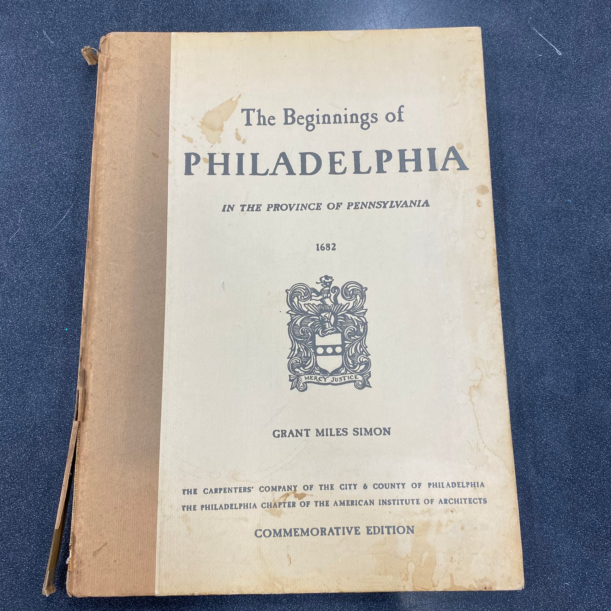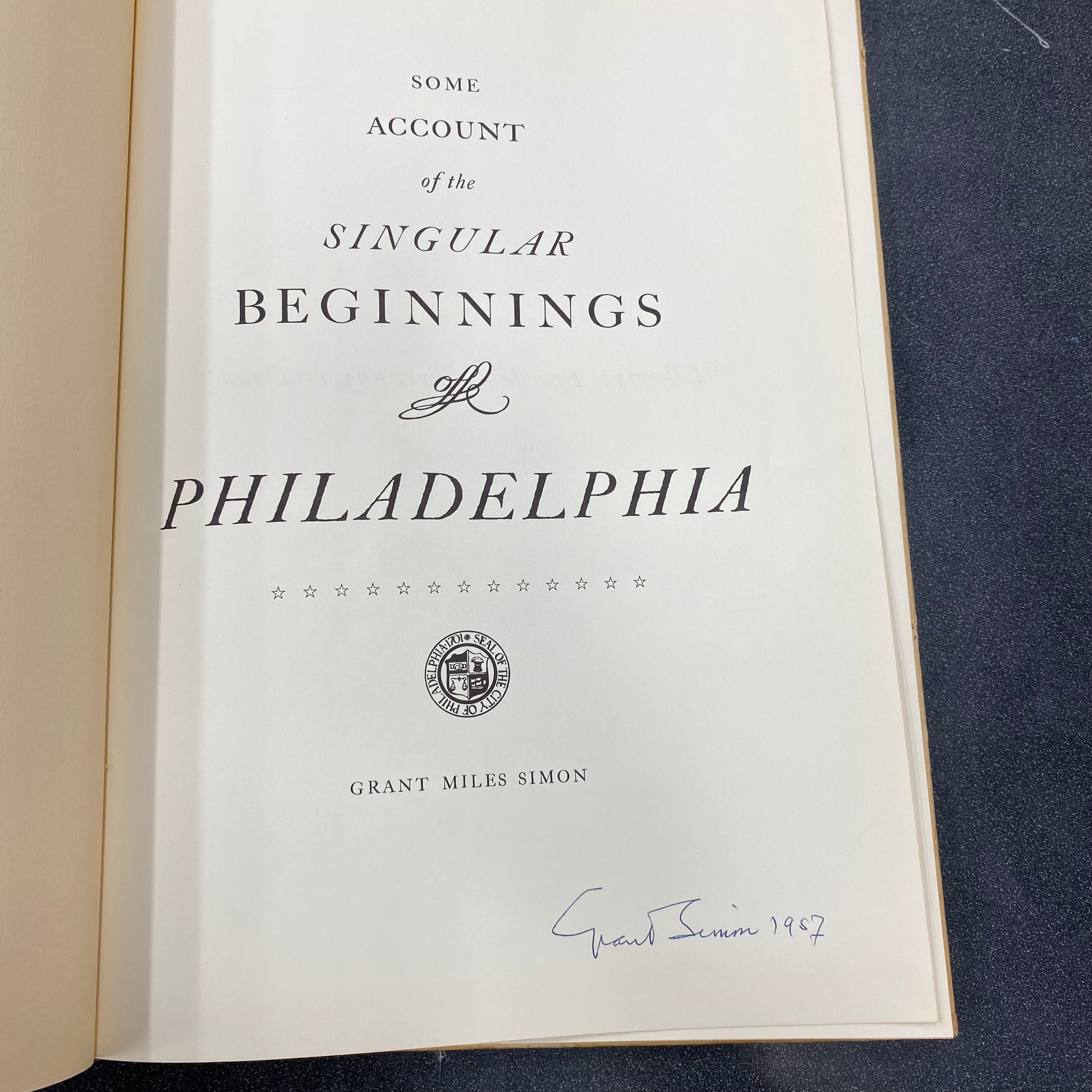 The work, fully titled Some Account of the Singular Beginnings of Philadelphia in the Province of Pennsylvania, 1682, was published in 1957, often in conjunction with the Carpenters' Company of Philadelphia or the American Philosophical Society. It provides an account of Philadelphia's founding by William Penn in 1682, detailing the initial settlement and development between the Delaware and Schuylkill rivers. Simon was known for producing a detailed, accompanying map titled "Part of old Philadelphia, a map showing historic buildings & sites from the founding until the early nineteenth century." Simon was a prominent figure in Philadelphia's architectural and historical community, serving as chair of the Philadelphia Historical Commission. His work contributed significantly to the understanding and preservation of the city's early historic fabric, including advising on the development of Independence National Historical Park.